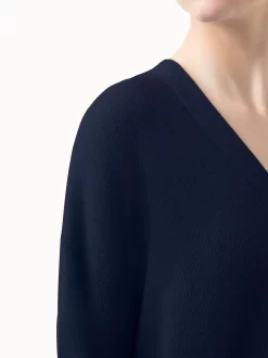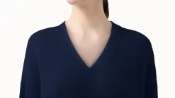 AKRIS Ribbed Cashmere Long V-Neck Knit Pullover