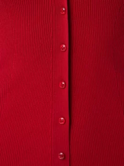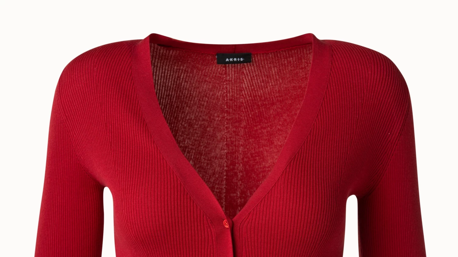Fitted v-neck knit cardigan in high twisted sea island cotton. It features fine rib with fully fashion detail, button closure and long sleeve.