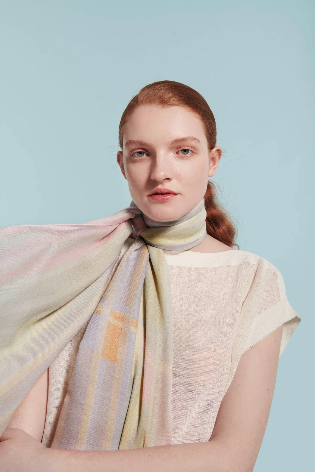 Add the final touch of elegance to your outfit with this shawl in cashmere silk, featuring the Variazioni print. 70x200cm