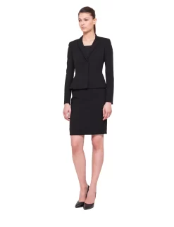 Short jacket in wool double face, back pleats, single breasted, seam pockets.