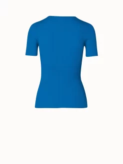AKRIS Silk Cotton Rib Short Sleeve Pullover