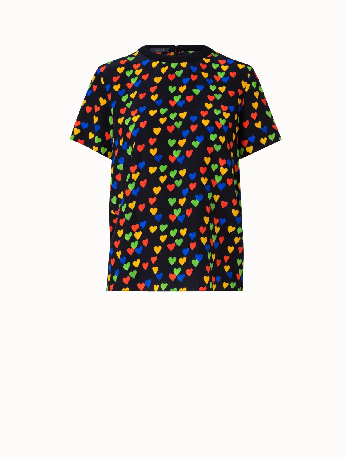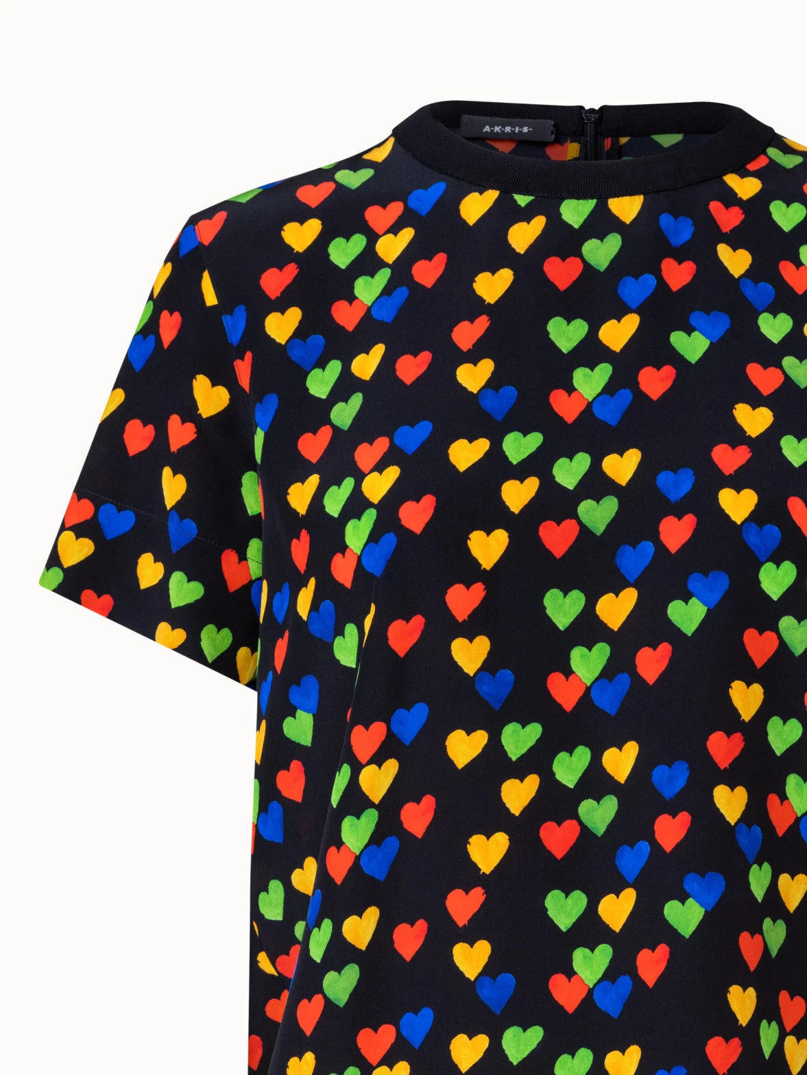 As part of the vintage inspiration of the Akris Spring 2023 collection and celebration of 100 years Akris, this blouse showcases a vibrant hearts Druck.