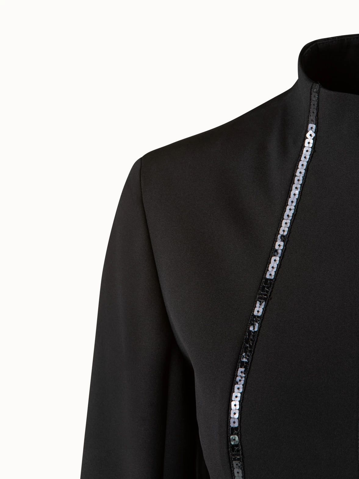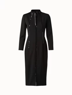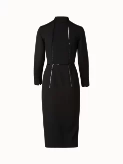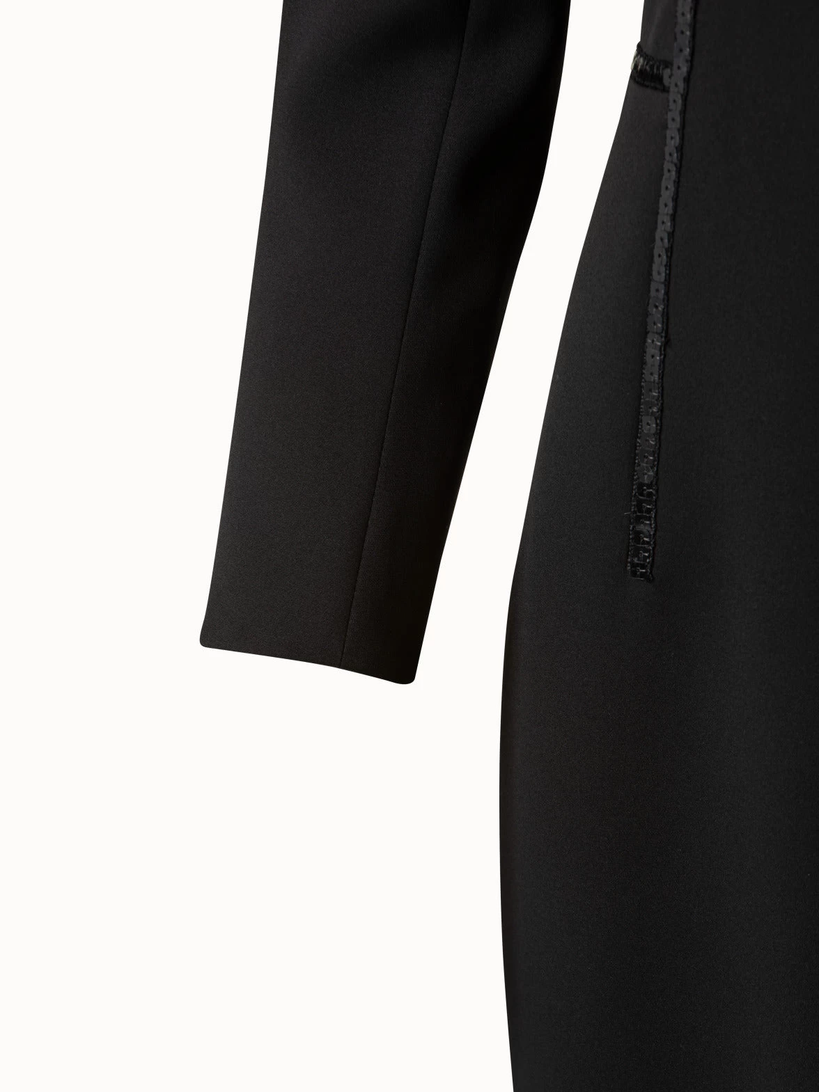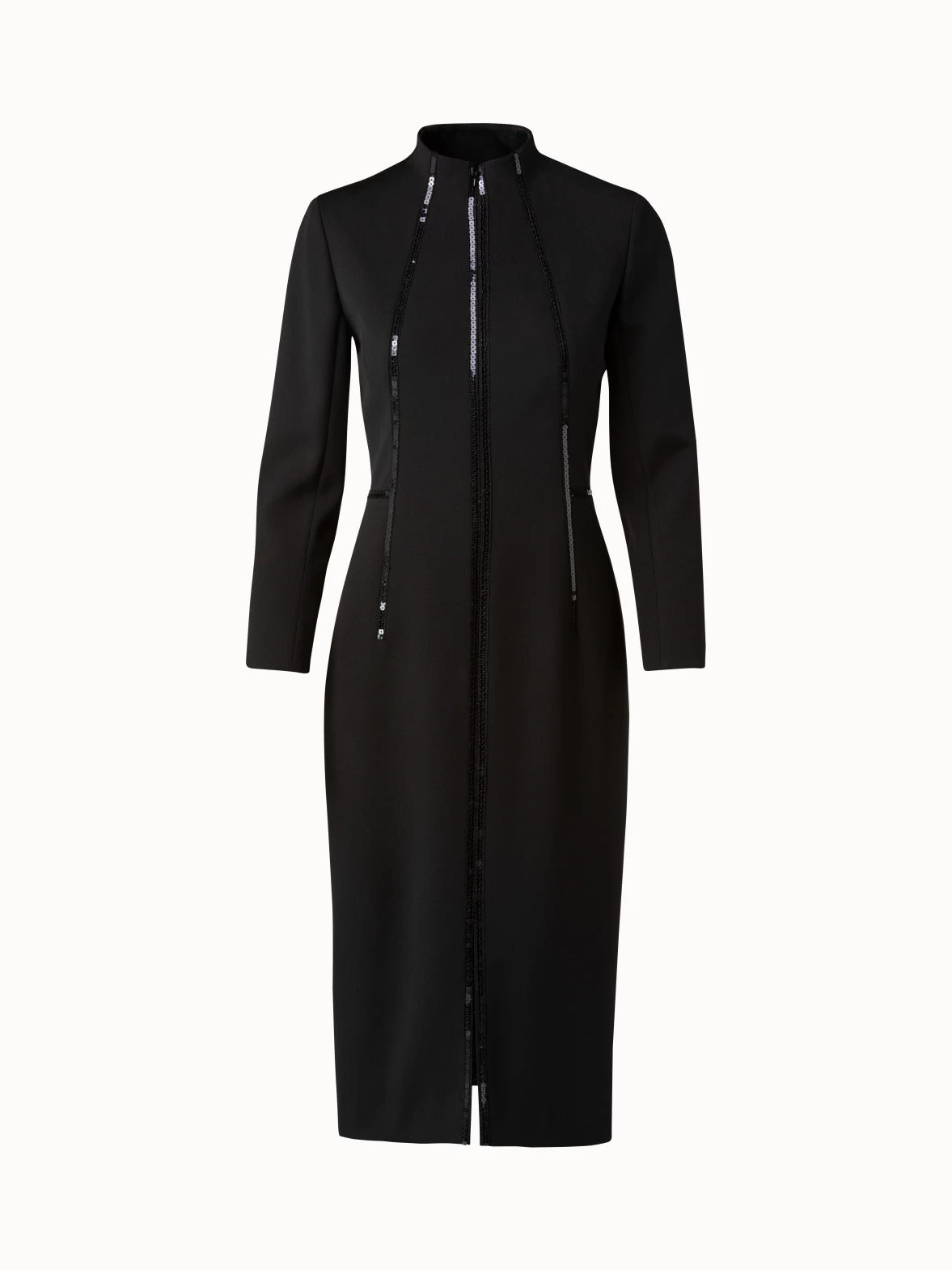 AKRIS Silk Crêpe Fitted Sheath Dress With Sequins Piping
