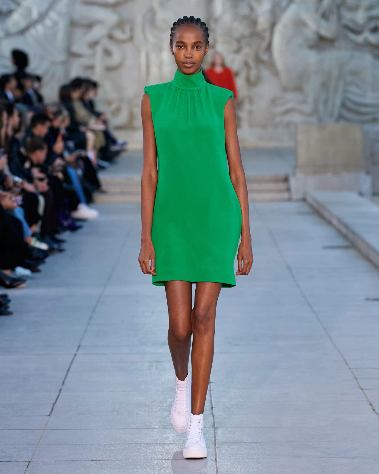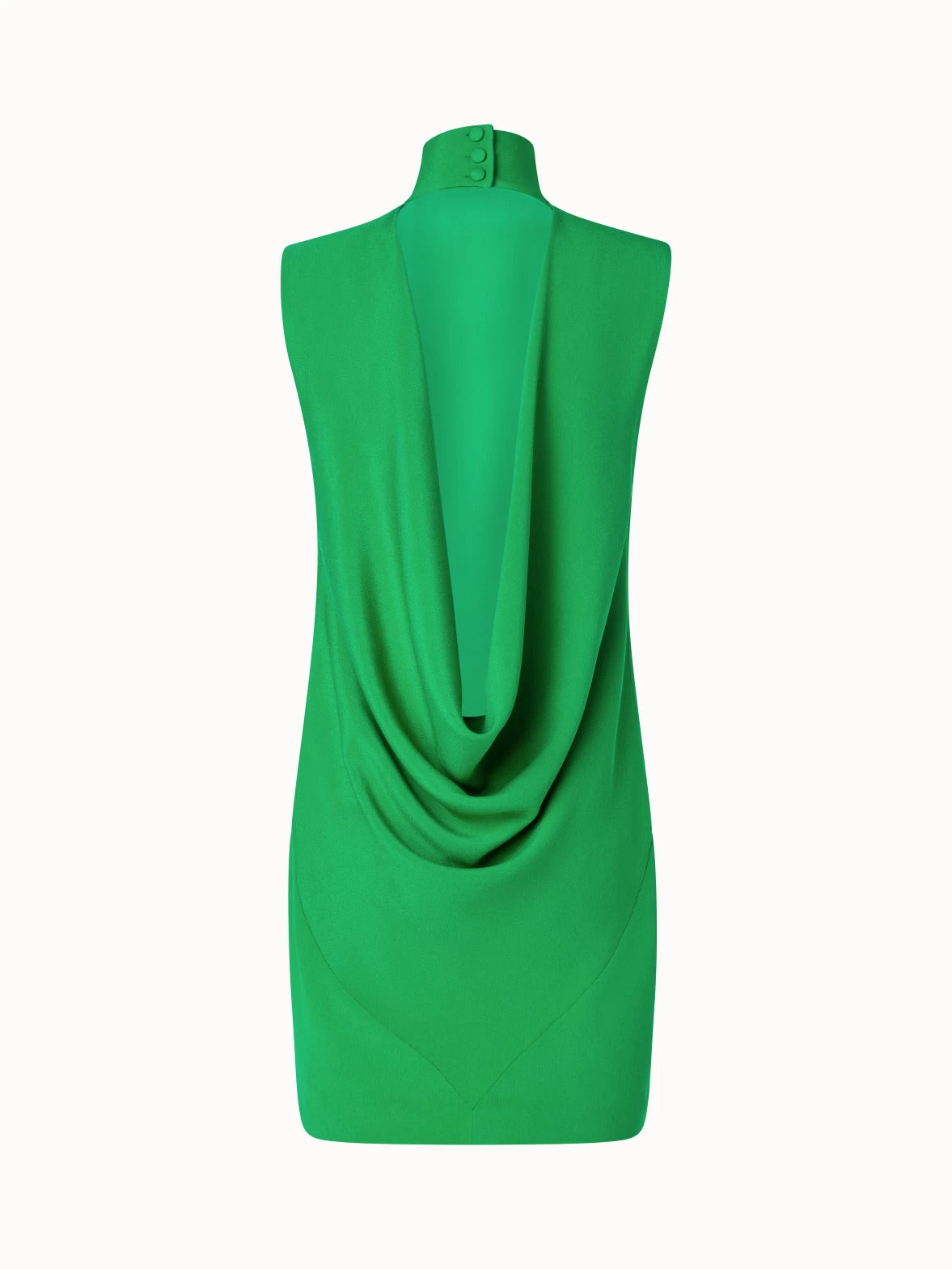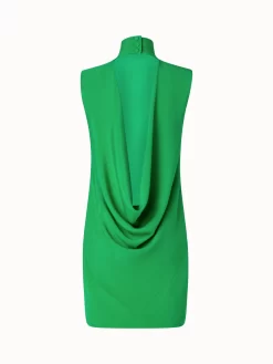 This short Akris dress is a modern silhouette for special occasions and is sure to make you stand out. Crafted in silk crêpe, it is perfect for spring and summer. The stand-up collar with front pleats and deep draped back decollete create an exceptionally elegant and feminine look.