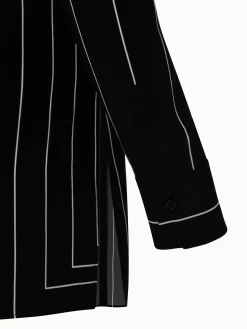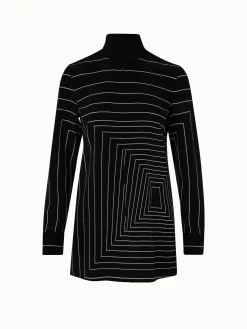 Monochrome elegance never loses its appeal. This Trapezoid Square Print tunic blouse is crafted from silk crêpe and features a characteristic mock neck with hidden front zip for different styling options. An elongated body, side slits, and long sleeves add to the sophisticated look.