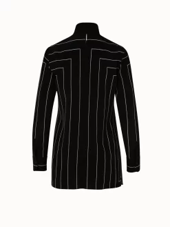 AKRIS Silk Crêpe Trapezoid Square Print Tunic Blouse With Front Zip Collar