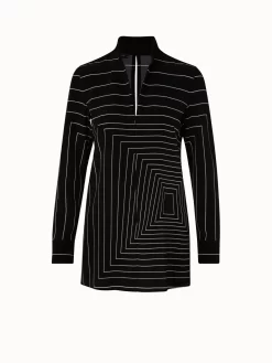 AKRIS Silk Crêpe Trapezoid Square Print Tunic Blouse With Front Zip Collar