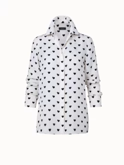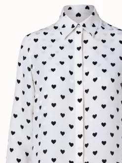 AKRIS Silk Crêpe Tunic Blouse With Hearts Jacquard And Print