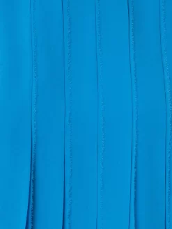 This Akris blouse is crafted in silk georgette with a layered pleated front. Concealed side zips can be opened to create slits for additional movement.