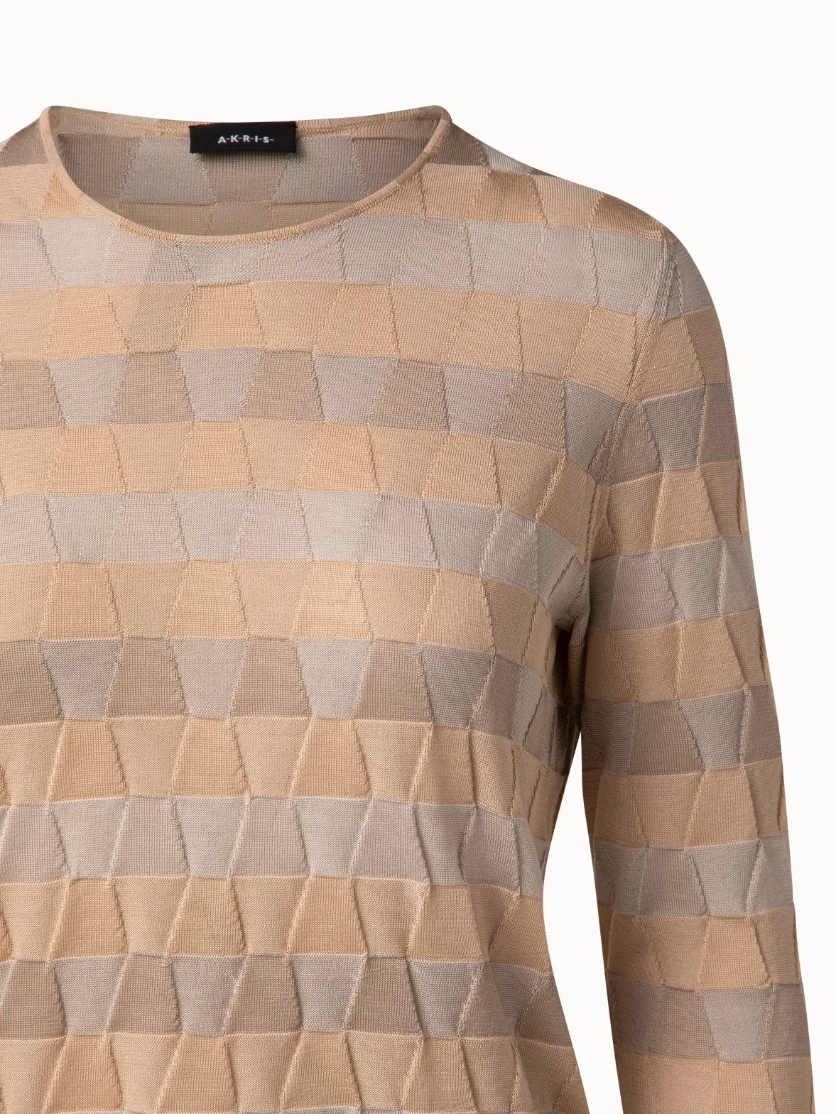 AKRIS Silk Knit Pullover In Trapezoid Jacquard