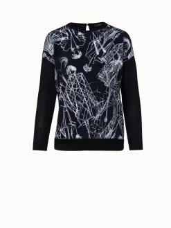 AKRIS Silk Knit Pullover With Croquis Print Crêpe Front