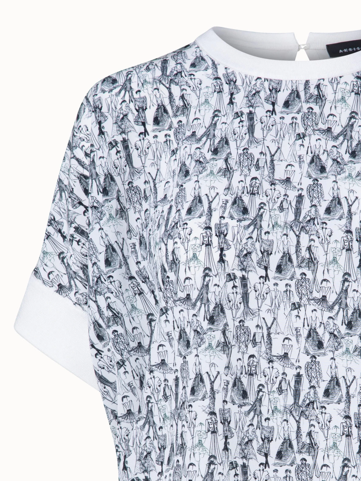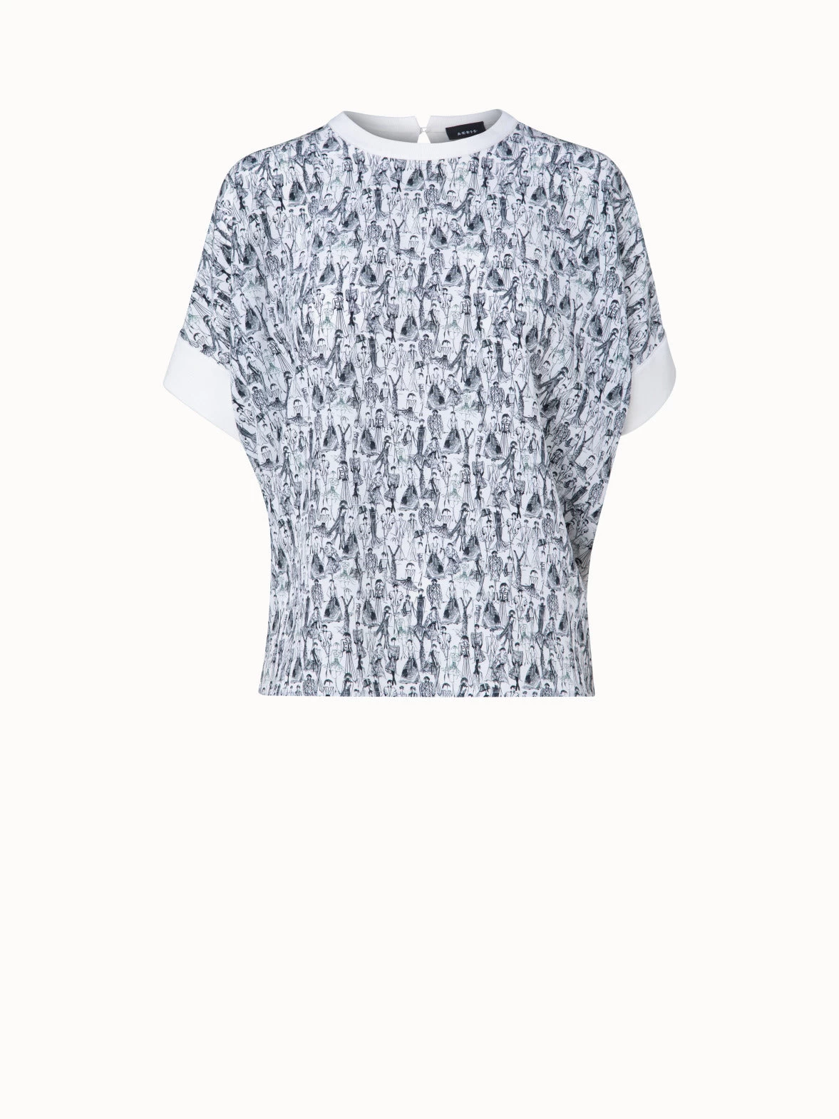 AKRIS Silk Knit Tunic With Croquis Print Crêpe Front