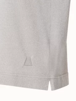 This Akris short sleeve pullover is crafted in a lightweight silk lurex knit, adding a beautiful shimmer and shine to an essential silhouette.