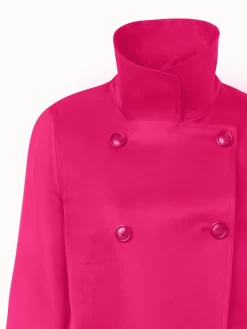 This short Akris jacket Gael is crafted in a lightweight silk organza, making it a perfect top layer for warm spring and summer days and nights. The cropped, double-breasted design merges formality and modernism in a contemporary style.
