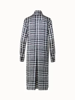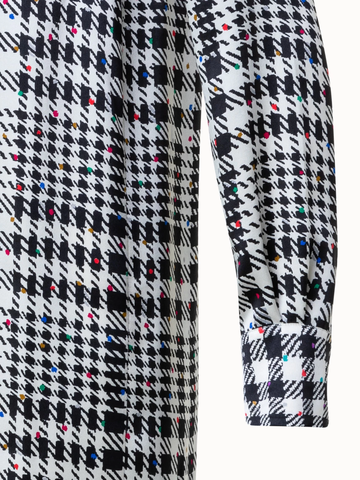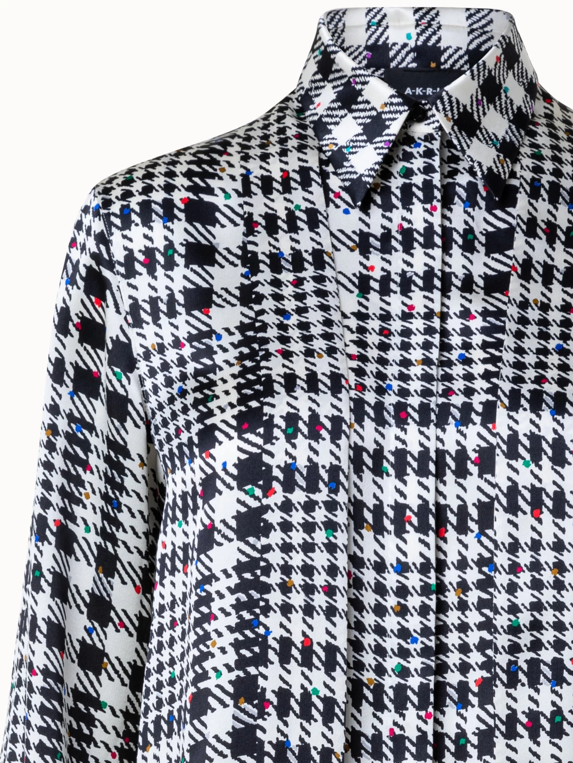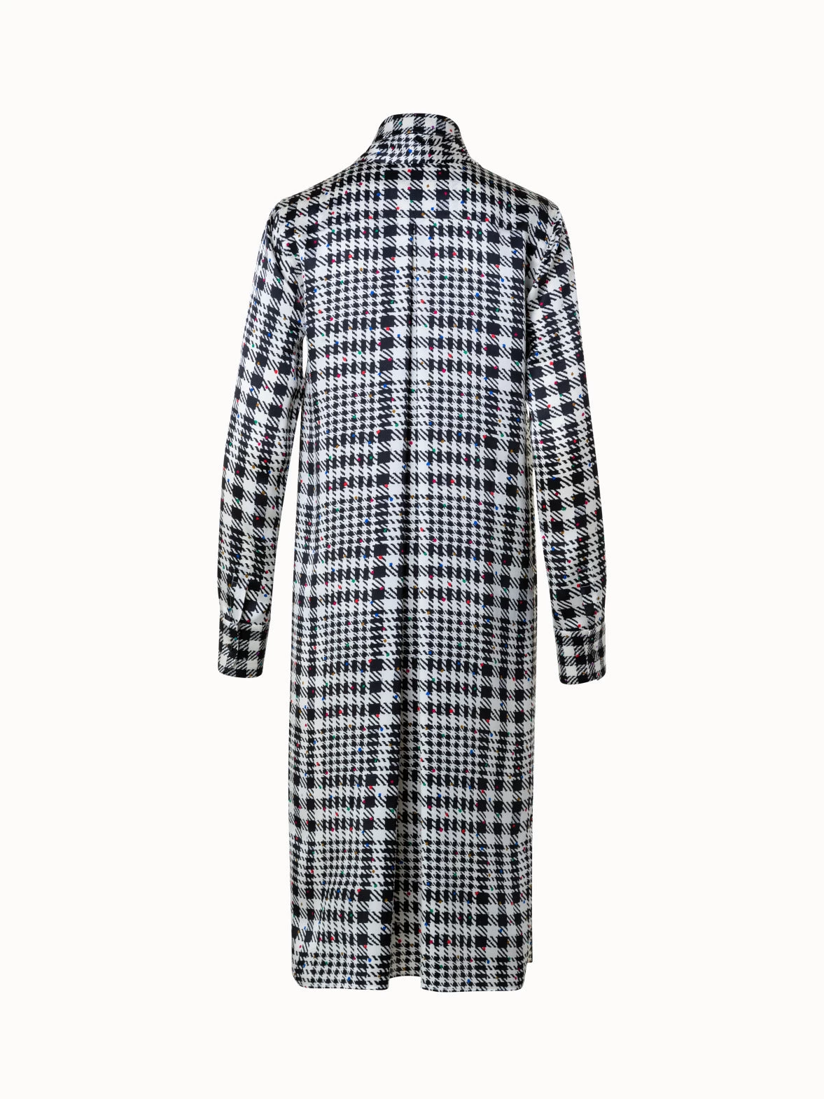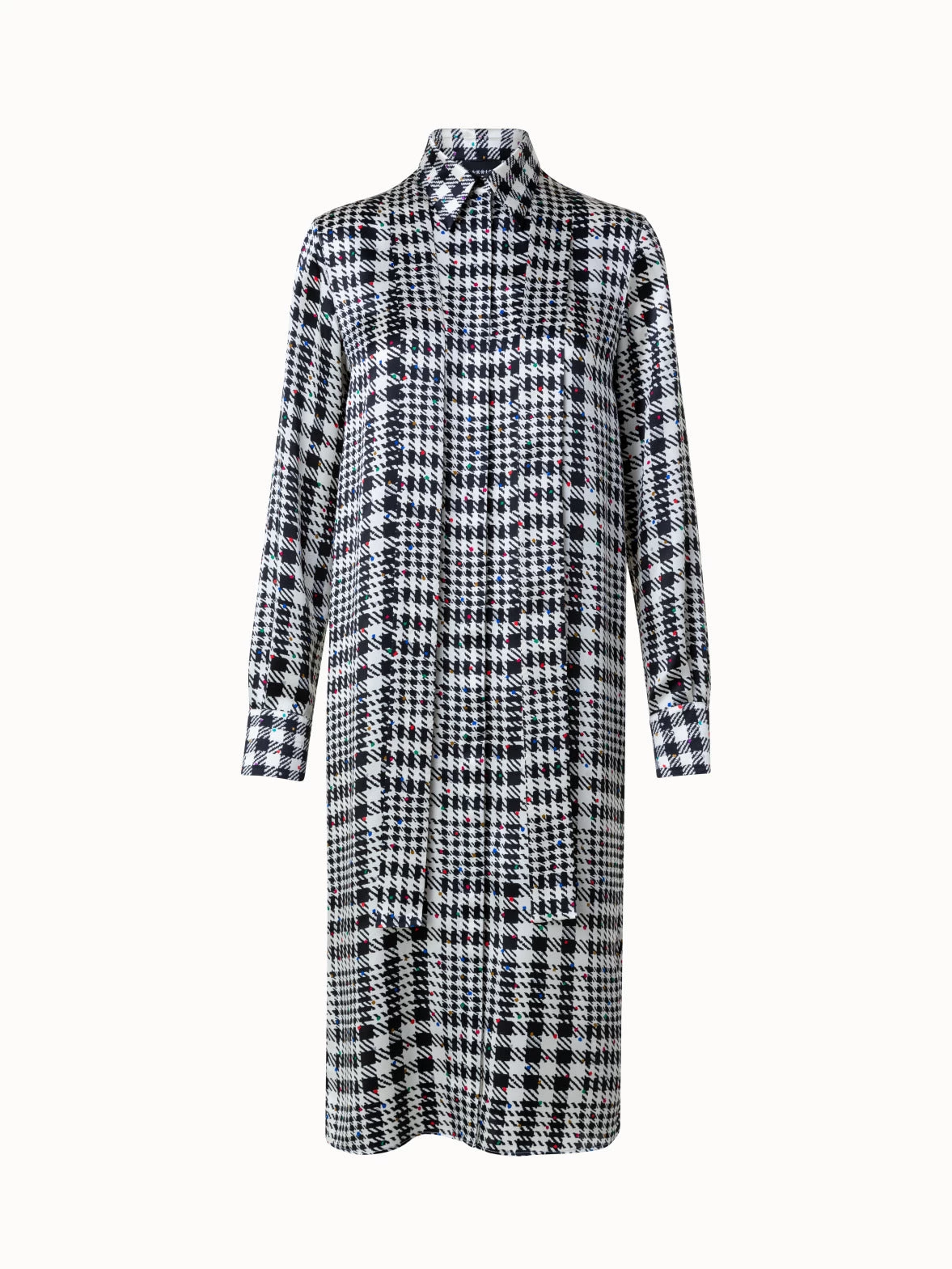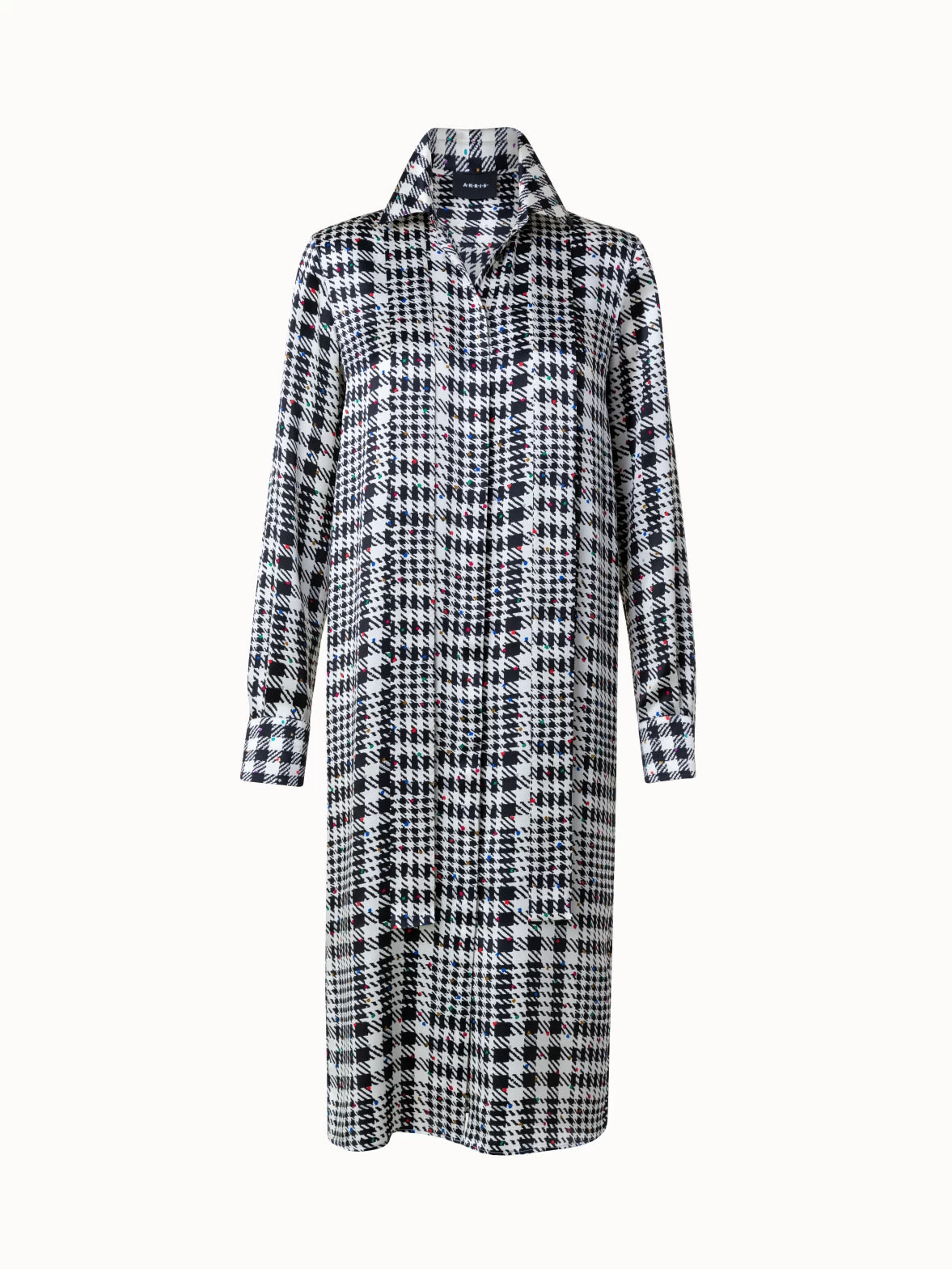 AKRIS Silk Satin Shirt Dress With Tweed Check Print