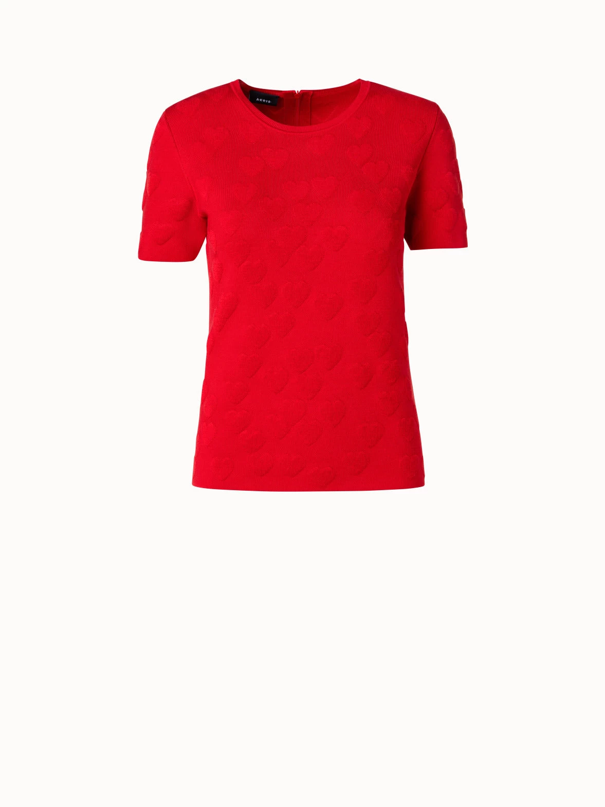 The silk stretch jacquard knit in which this Akris short sleeve pullover is crafted subtly showcases a 3D heart pattern. This top is cut for a fitted silhouette.