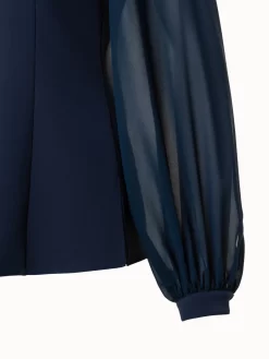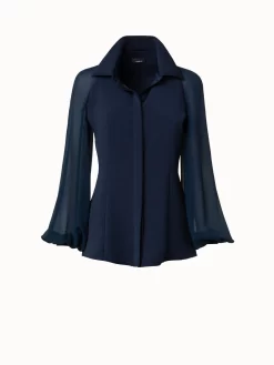 AKRIS Silk Stretch Crêpe Blouse With Transparent Organza Sleeves