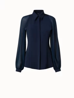 AKRIS Silk Stretch Crêpe Blouse With Transparent Organza Sleeves