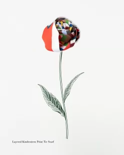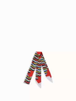 This versatile silk twill scarf will be your newest go-to accessory. It can be used to wear your sunglasses or face mask around your neck, or as a wrist, neck, or handbag accessory. A unique kinderstern print adds color and geometric shapes to this scarf. Measures 5 x 122 cm / 2 x 48 in.
