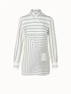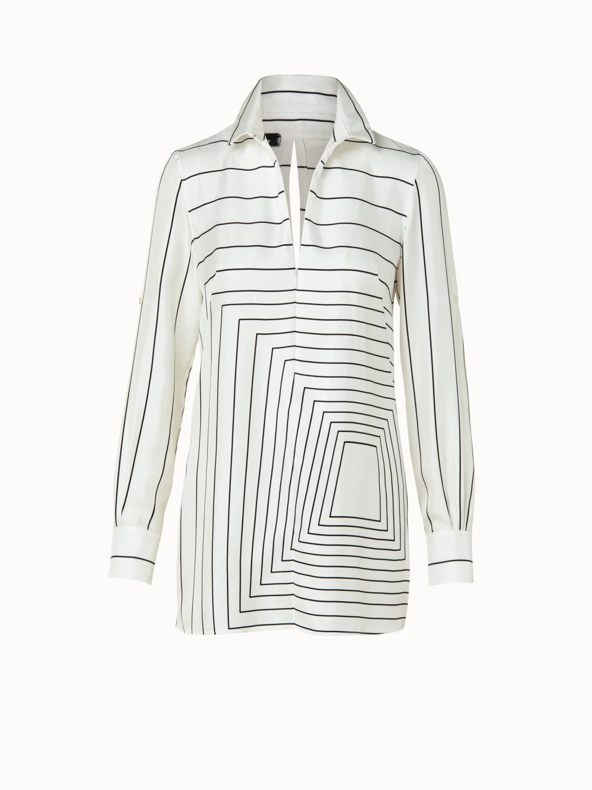 AKRIS Silk Twill Trapezoid Square Print Tunic Blouse