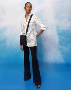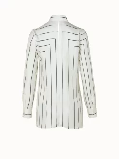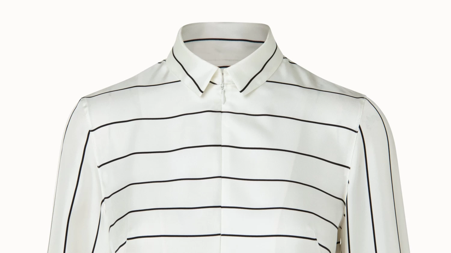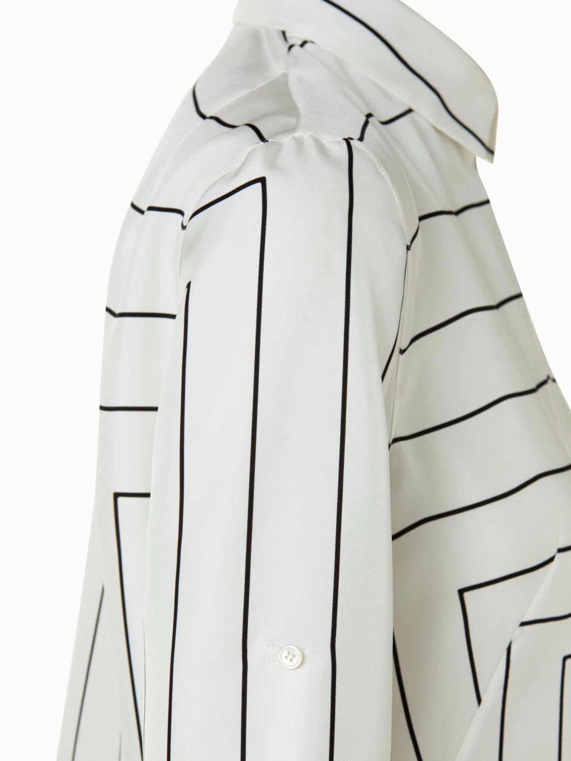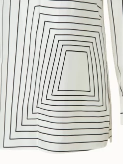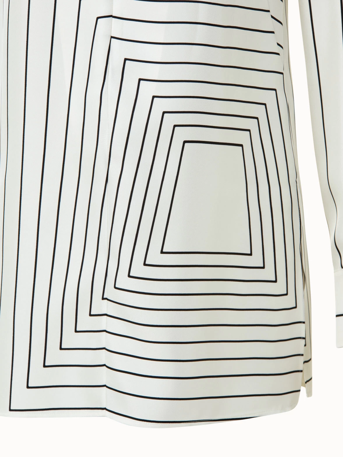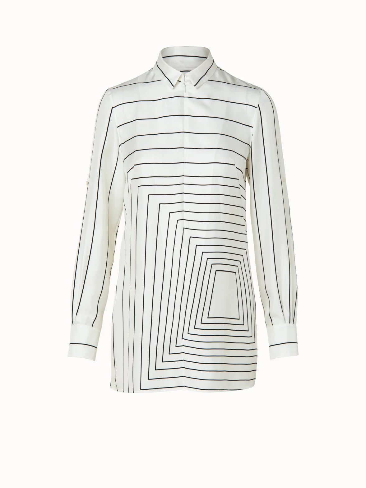 Monochrome elegance never loses its appeal. This Trapezoid Square Print tunic blouse is crafted from silk twill and features a shirt collar with a hidden front half zip for versatile styling options. A back slit and side slits create movement in the light fabric, while roll up sleeves allow for a more casual look.
