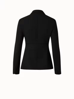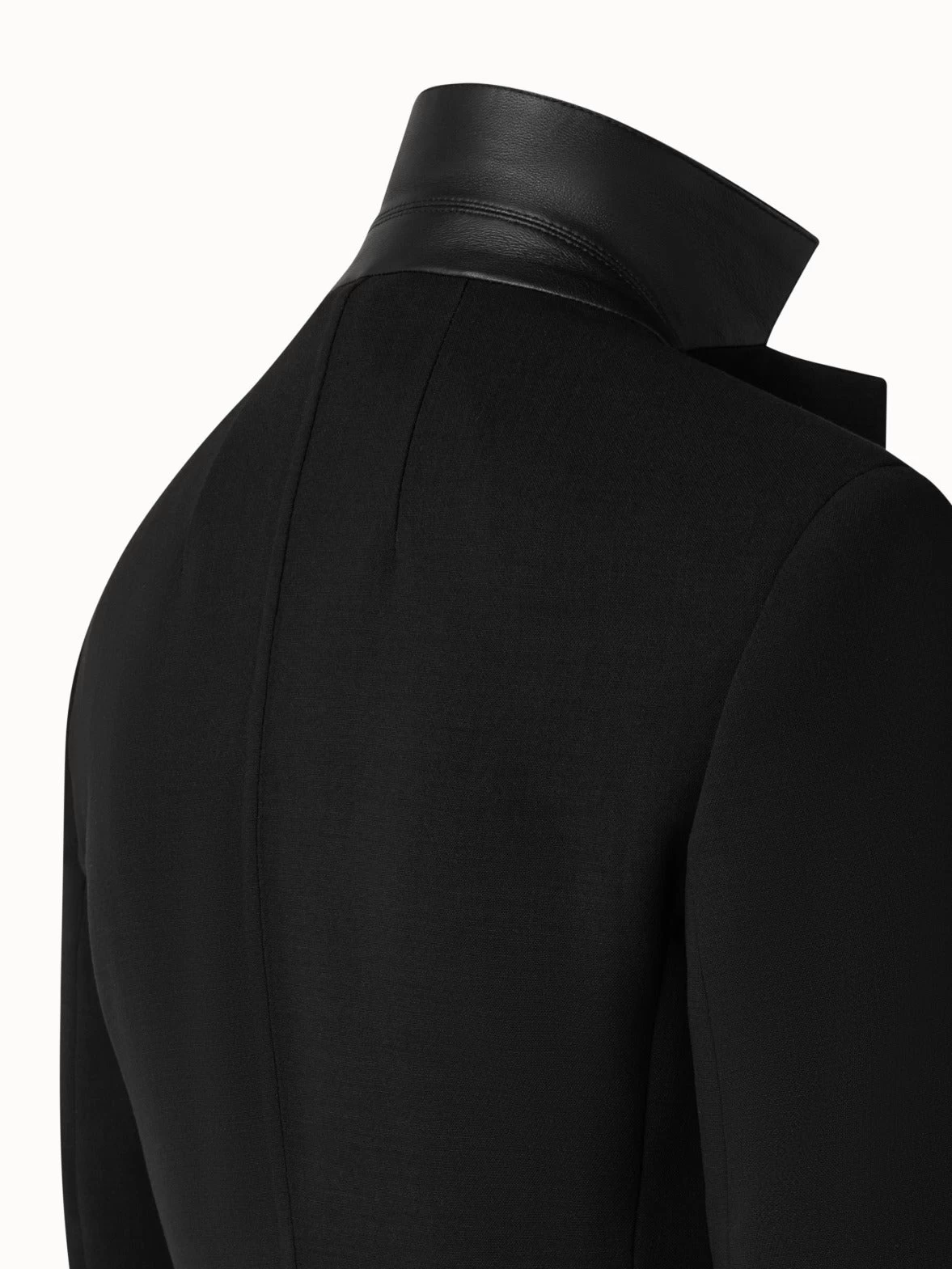 AKRIS Single Breasted Double Face Wool Blazer With Leather Collar