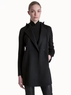 AKRIS Single Breasted Double Face Wool Coat With Detachable Hood