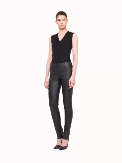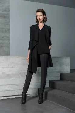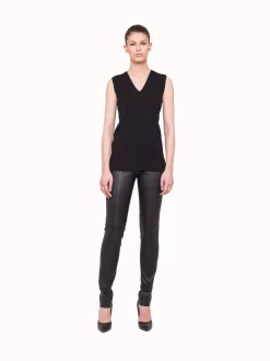 This lightweight wool top is breathable and soft. A semi-transparent v-neck outline decorates the front silhouette. Side slits complete the look.