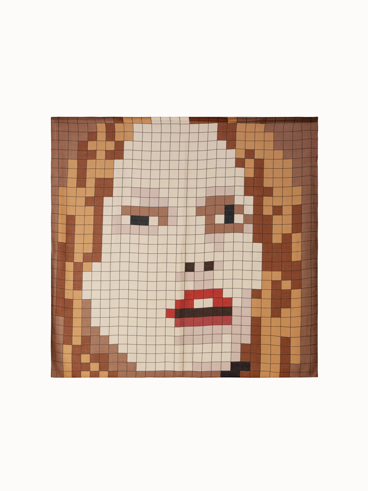 AKRIS Square Cashmere Silk Scarf With Drei Teile Print
