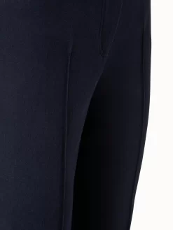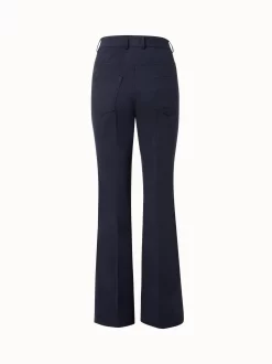 These Akris FARID pants are crafted in cotton stretch denim for everyday wear, comfort, and versatility. They fit slim through the hips and thighs before falling to flared hems for an elongating look. Completing the classic jeans styling, they feature a front closure and five pockets.