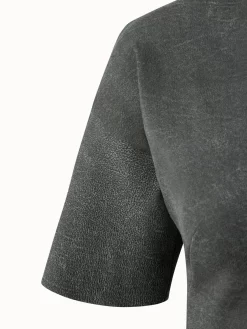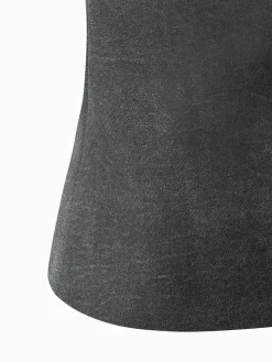This fitted blouse in lamb suede stretch has a feminine elegance with an edge. The suede has a vintage look and the blouse features a mock neck, back zip closure and kimono short sleeves. The fitted nature of the blouse allows for a seamless look when tucked into a skirt or trouser.