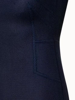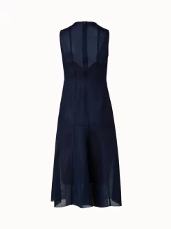 This Akris midi dress is crafted in a modern techno grid fabric that creates a structured look and comfortably lightweight feeling. It features a round neck and zip closure. The fitted body and skirt with back godet create a flattering silhouette. Includes a slip dress.