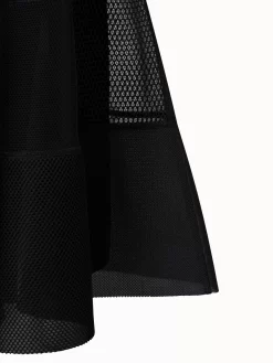 This Akris long skirt is crafted in techno grid patchwork. Patches of grids with different densities create a subtle monochrome checkered look. The skirt is cut for an A-Line shape and closes with a hidden zip.