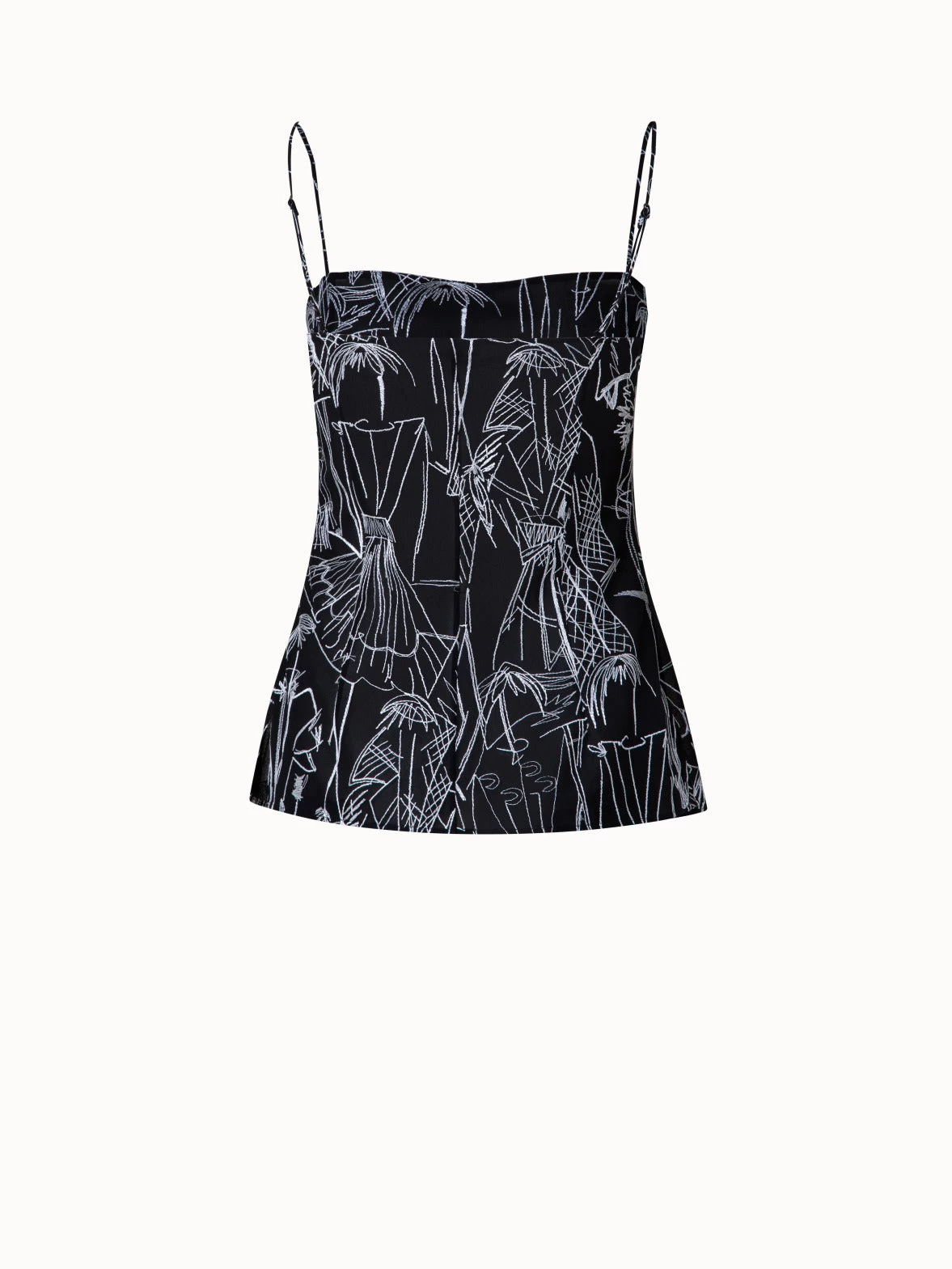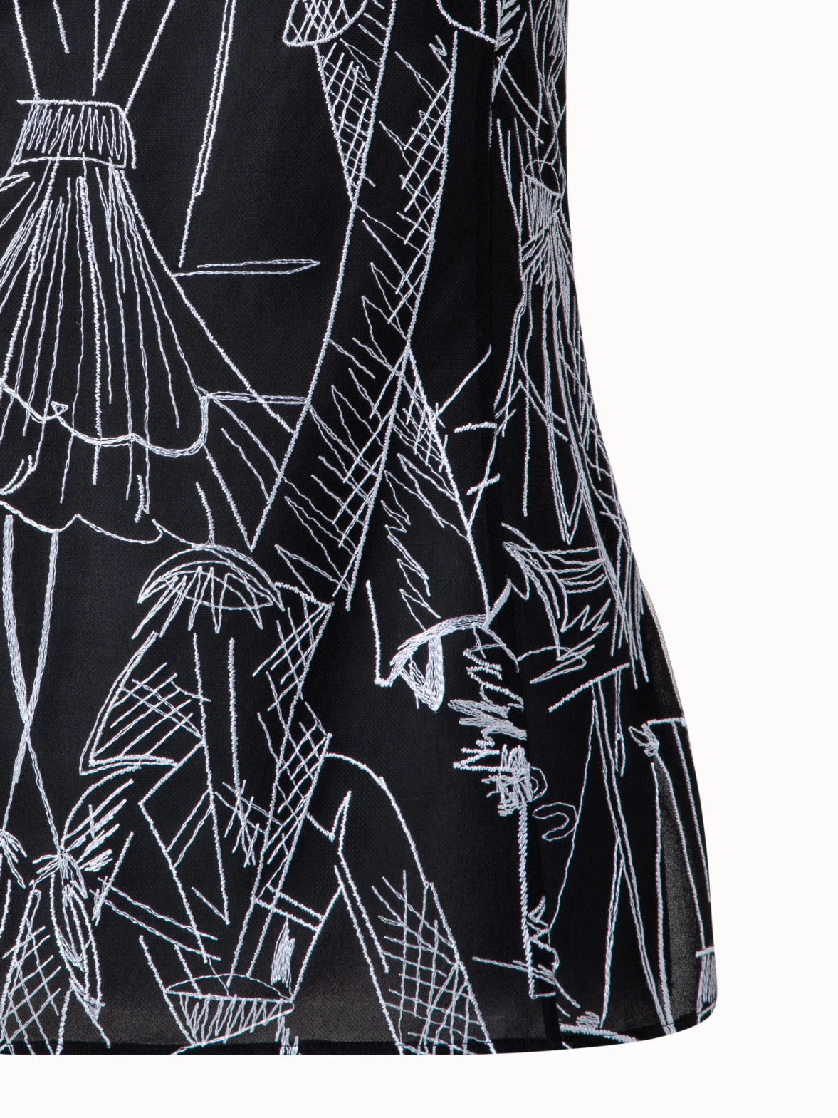 AKRIS Techno Tulle Top With Croquis Embroidery