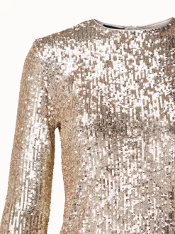 This shimmering Akris top is crafted in sequins on a soft jersey for a stand-out look without sacrificing the comfort that will make you feel your best at all upcoming festivities. Cut for a slim fit with a round neck, back zip, and long sleeves.