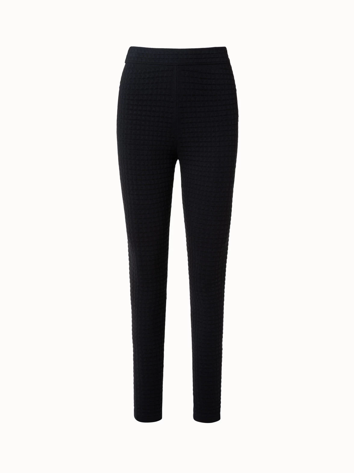 AKRIS Trapezoid Grid Wool Silk Stretch Jacquard Knit Leggings