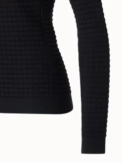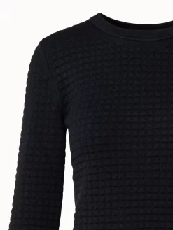 AKRIS Trapezoid Grid Wool Silk Stretch Jacquard Pullover