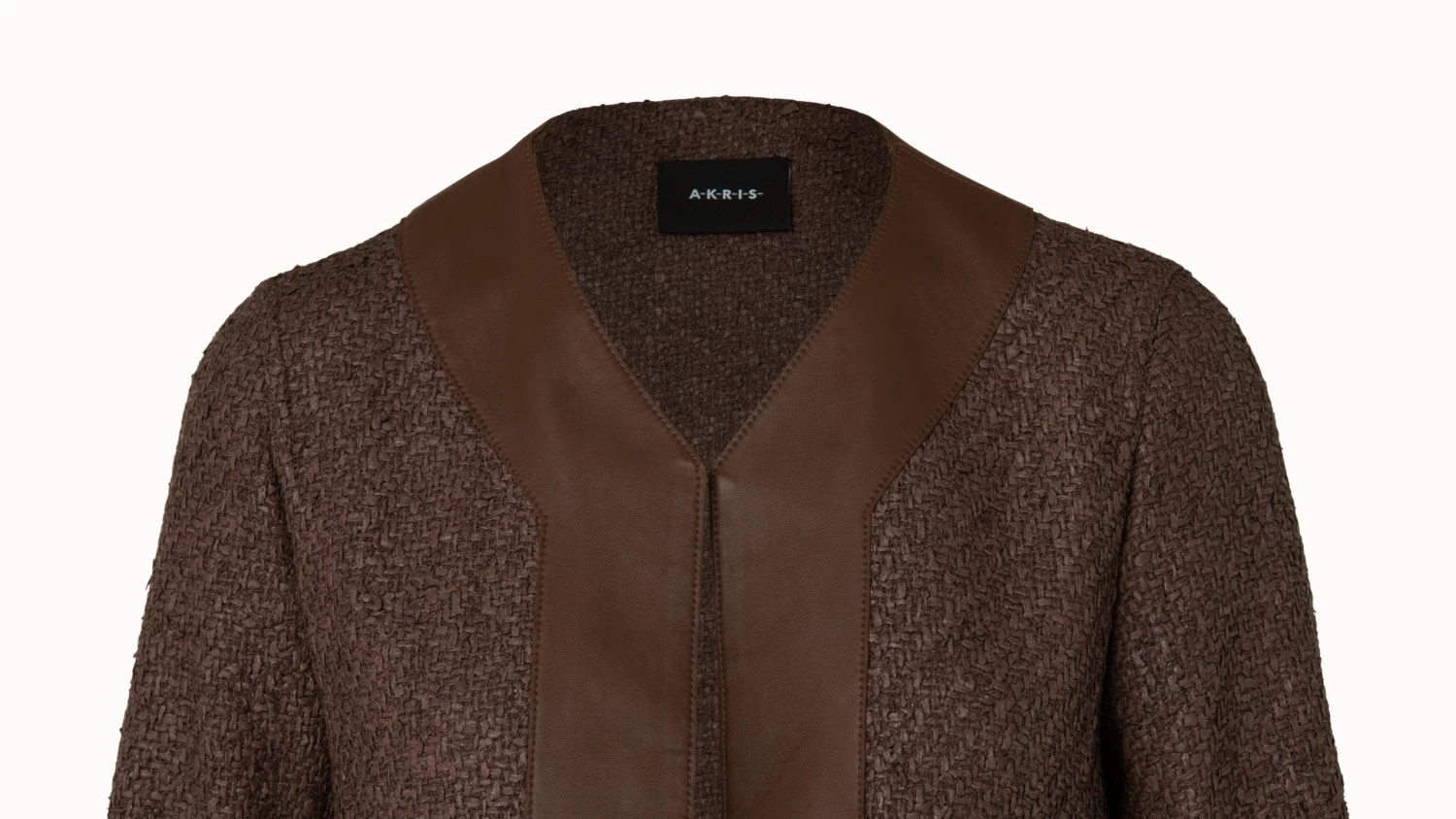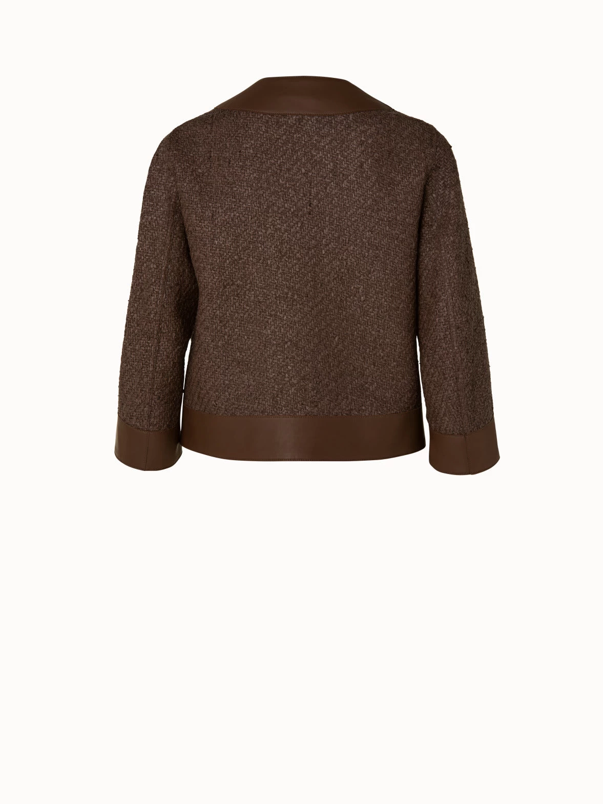 AKRIS Wool Blend Structured Tweed Jacket With Leather Trim