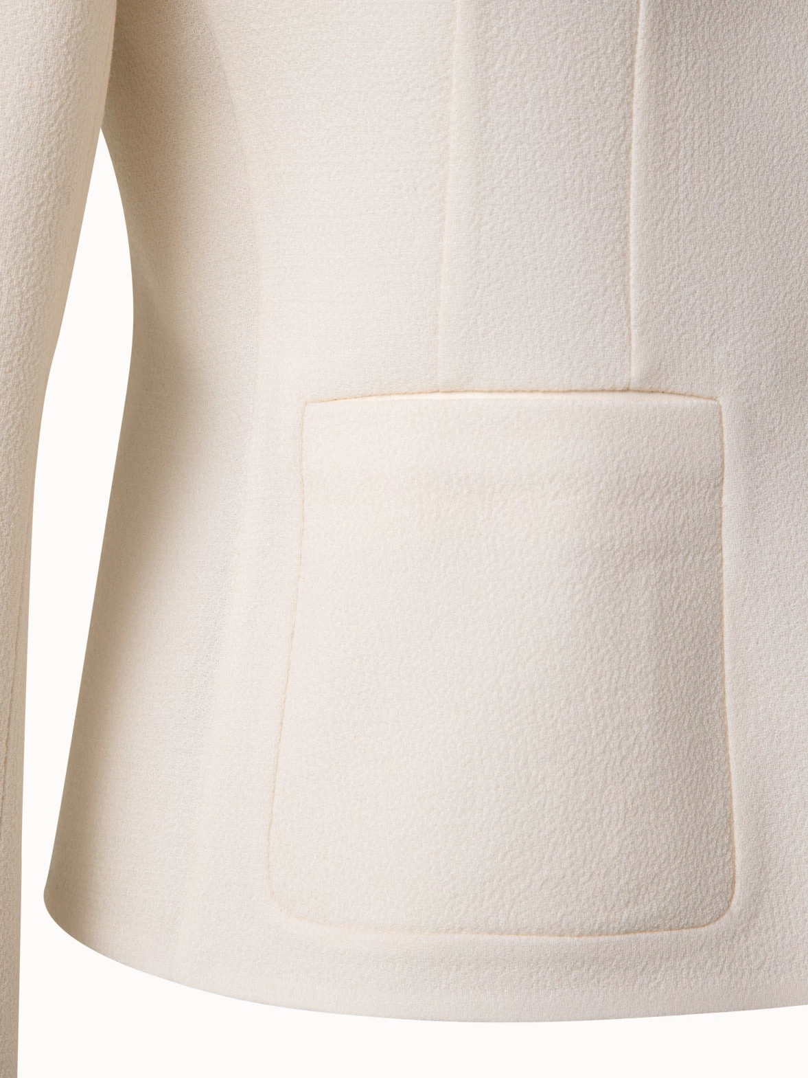 The Akris short jacket Lily is a modern tailoring piece that is as feminine as it is formal. Crafted in soft wool crêpe double-face, it is made for year-round wear. Easily create a versatile office look by pairing it with a sheath dress or high-waist skirt and blouse. Features a strong lapel collar and two-button closure for a sophisticated look. Precise waist tailoring subtly accentuates the female silhouette, while the stitched pockets are the perfect middle ground between more casual patch- and formal slit pockets.
