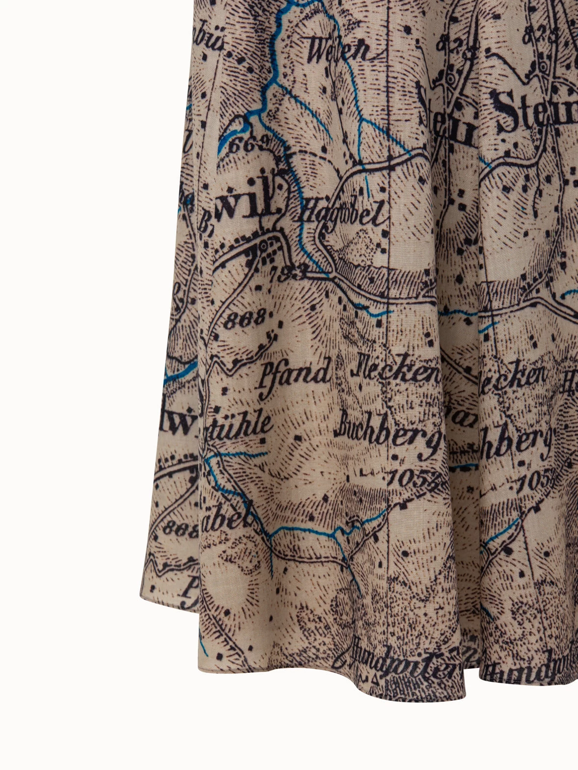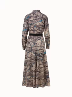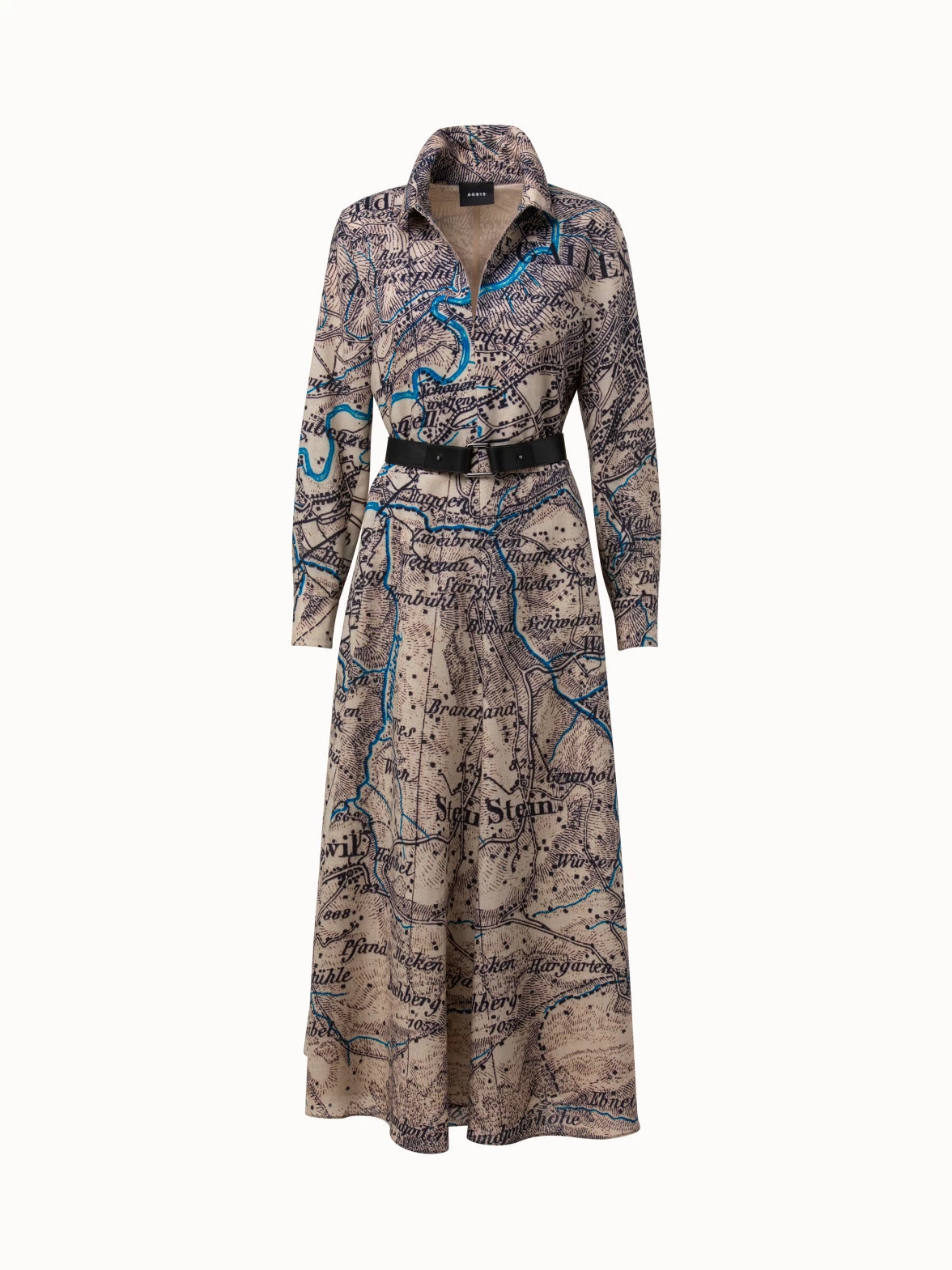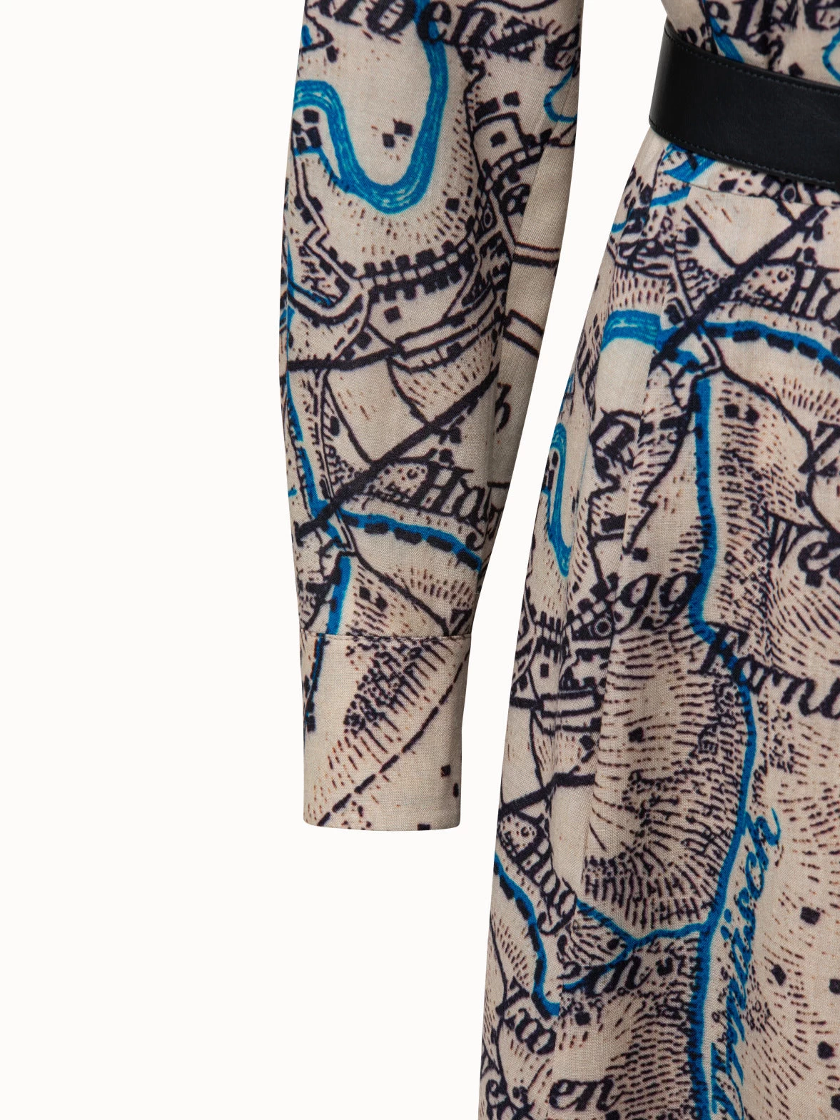 AKRIS Wool Mousseline Vintage St. Gallen Map Print Dress