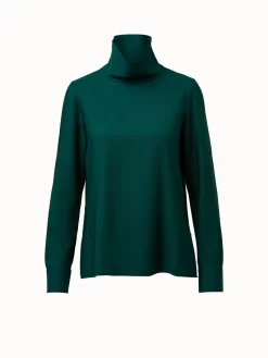 A fluid blouse in wool serge with zipped stand up collar and a loose fitting silhouette. The long sleeves can be rolled up and buttoned for versatile styling.