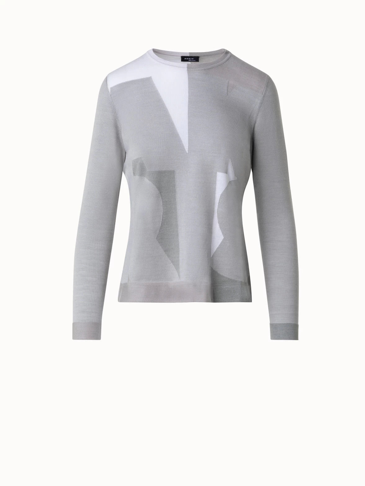 AKRIS Wool Silk Knit Composed Letters Intarsia Pullover