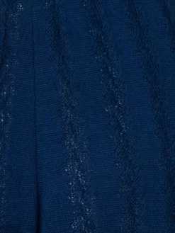 These Akris pants are crafted in a wool and silk knit lace, creating very subtle transparency in a striped pattern. The pleated front and elastic waist create a comfortable fit while maintaining an elegant look. The tapered leg completes this flattering silhouette. Closes with a side zip.