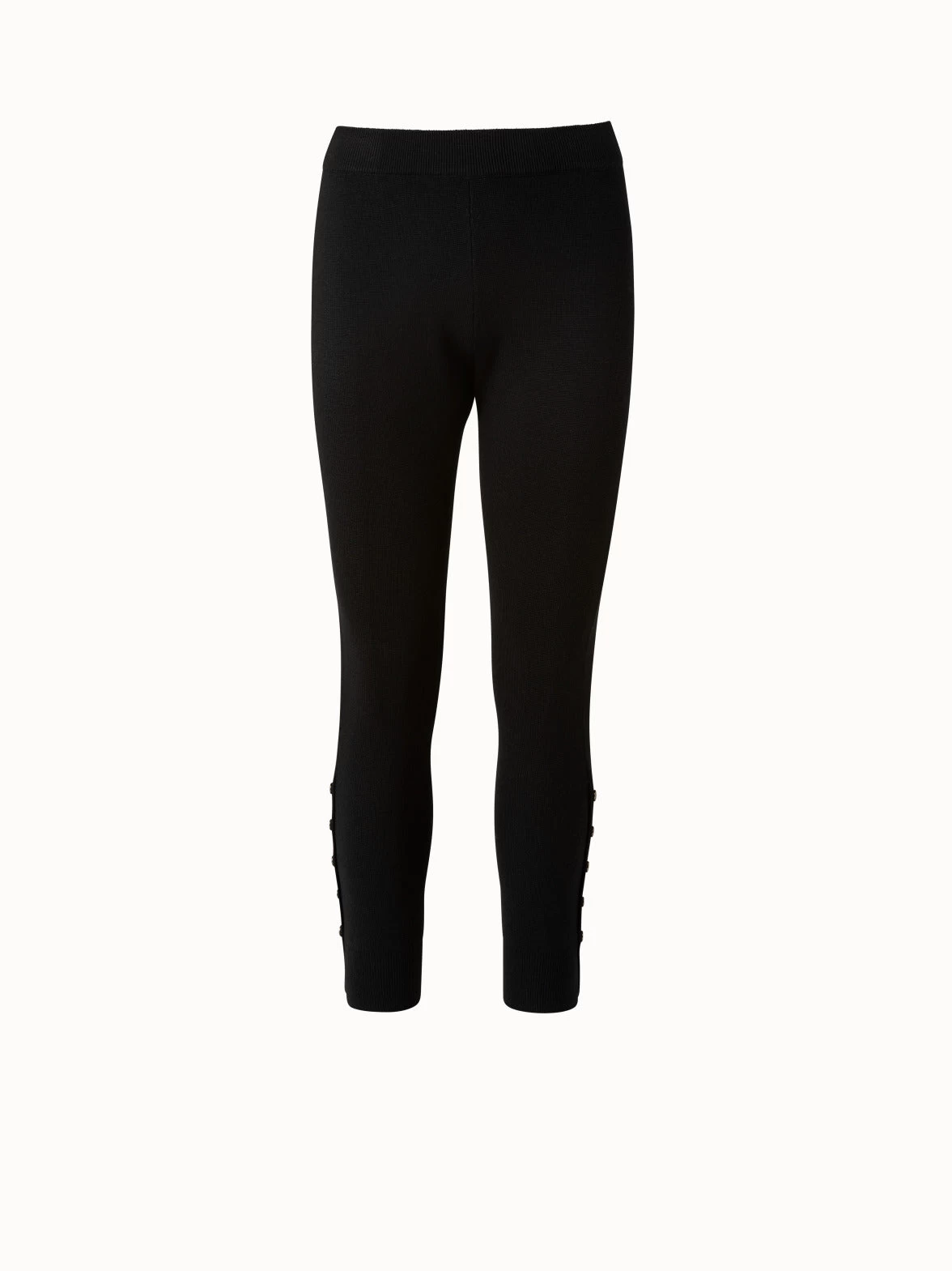 Discover a unique update to leggings with this Akris design in a luxuriously soft wool-silk blend knit with ankle snap detail. The ribbed waistband hugs the body comfortably, while the fine knit fabric creates an upscale look.
