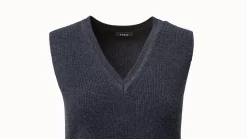 This wool stretch v-neck knit top is a versatile item to add to your wardrobe. The side slits and relaxed shape add ease for wear. Complete the look from head to toe with the matching wrap cardigan and knit pencil skirt.