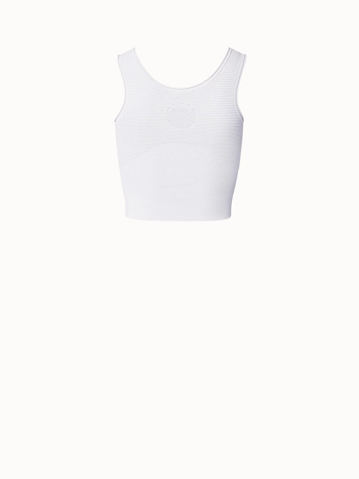 This Akris punto top is an sleek sports style that will keep you chic, cool, and comfortable when active. The top is crafted in an athletic bodycon knit made from a super stretch viscose blend. The cropped and sleeveless design make it perfect for warm weather in spring and summer, as well as high intensity activities.