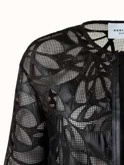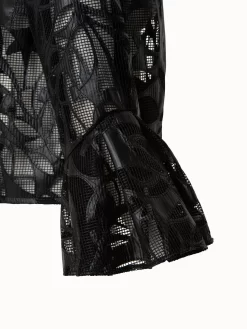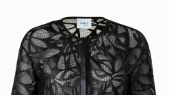 Boxy Jacket In Vegan Leather Leaves Cutouts On Techno Mesh