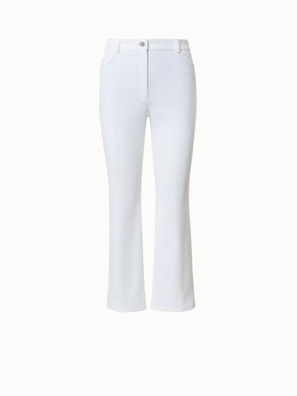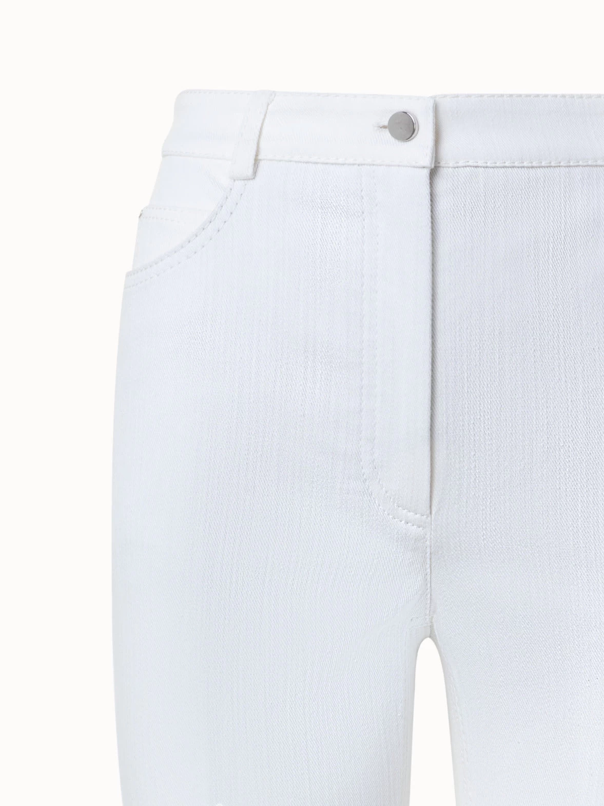 These Akris punto pants Cali are a new take on a jeans look. They are crafted in a cotton stretch fabric, creating a comfortable feel and casual look. These pants are cut with a cropped bootcut leg. They feature a front closure and five pocket design.