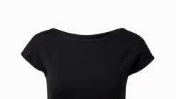 Cap-sleeve jerseytop in techno-stretch with back zip.