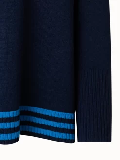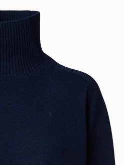This Akris punto knit pullover is a cozy style for casual everyday wear. The oversized boxy silhouette is crafted in a soft, refined wool and cashmere blend. The turtleneck will keep you warm in winter and comfortable when you are out and about. The color-block hem and side slits add a playful visual detail.